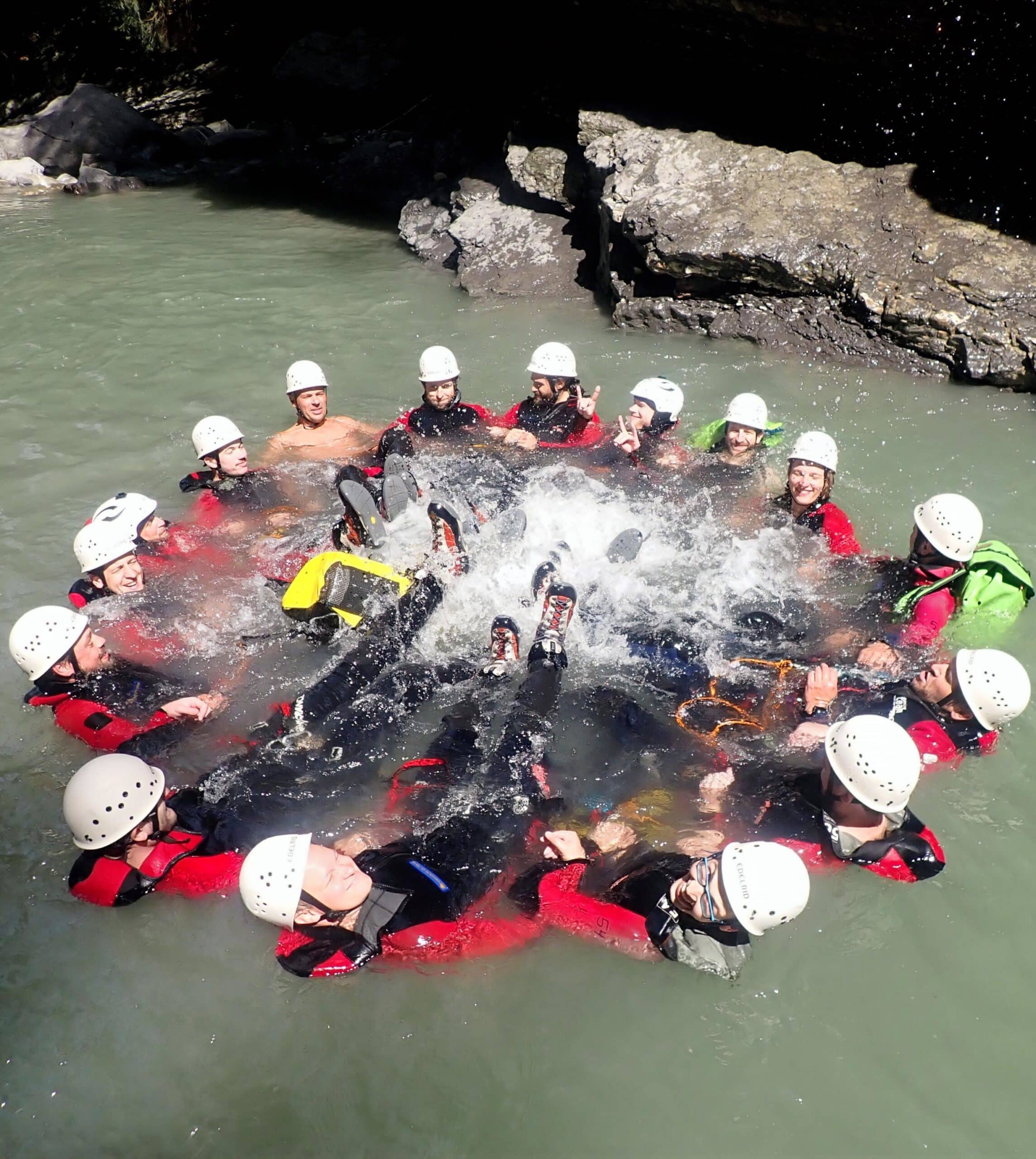 Beim Canyoning lernst Du die Flusslandschaft auf eine Art kennen, wie es im Alltag nicht möglich ist. Du erlebst den Fluss mit allen Sinnen und folgst ihm auf unbekannten Wegen.